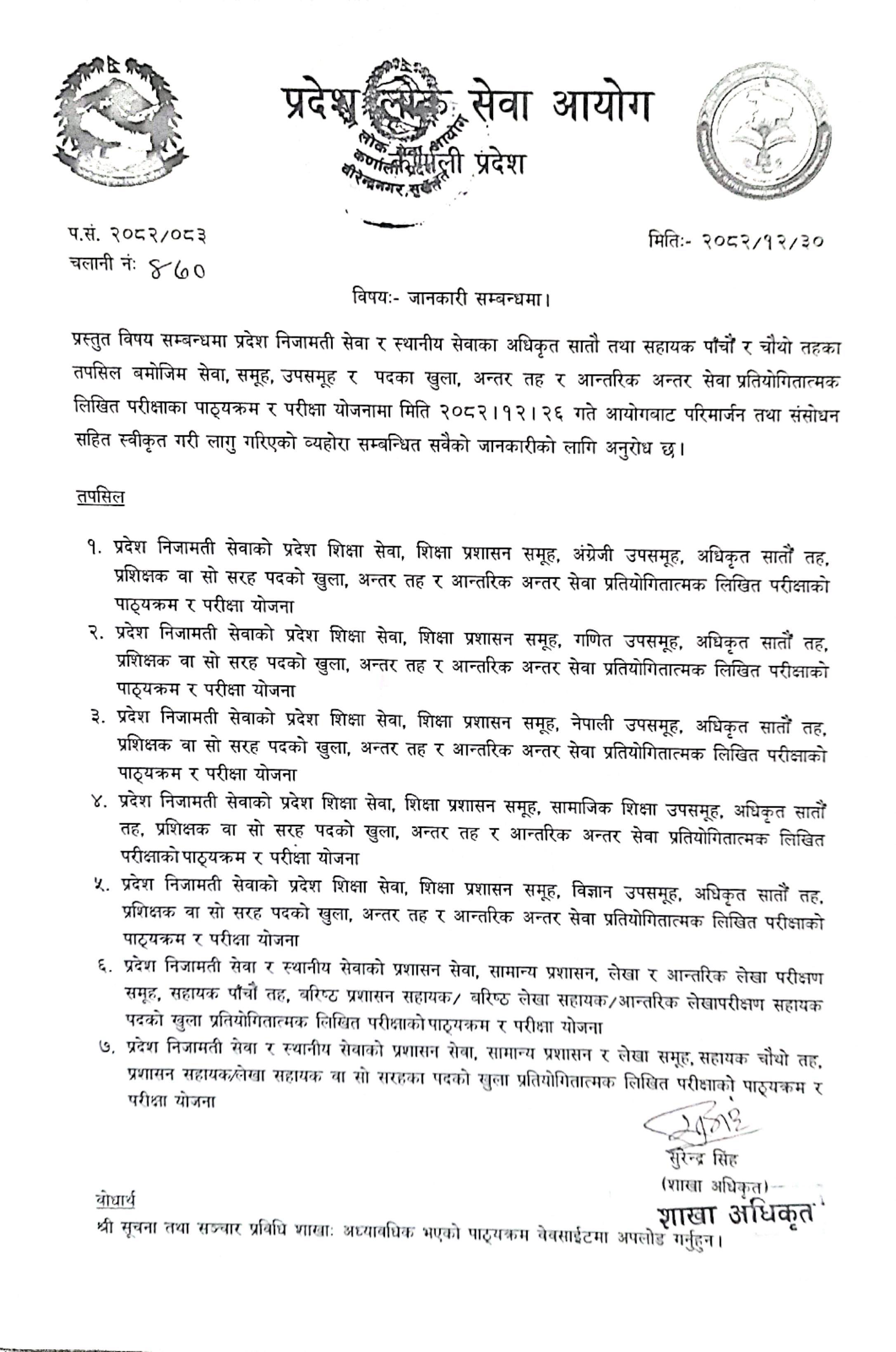 वि.नं. ३१०/२०८१-०८२ (खस आर्य महिला), प्रदेश प्रशासन सेवा, सामान्य प्रशासन समूह, चौथो तह, प्रशासन सहायक पदको वैकल्पिक उम्मेदवार सिफारिस सम्बन्धी सूचना